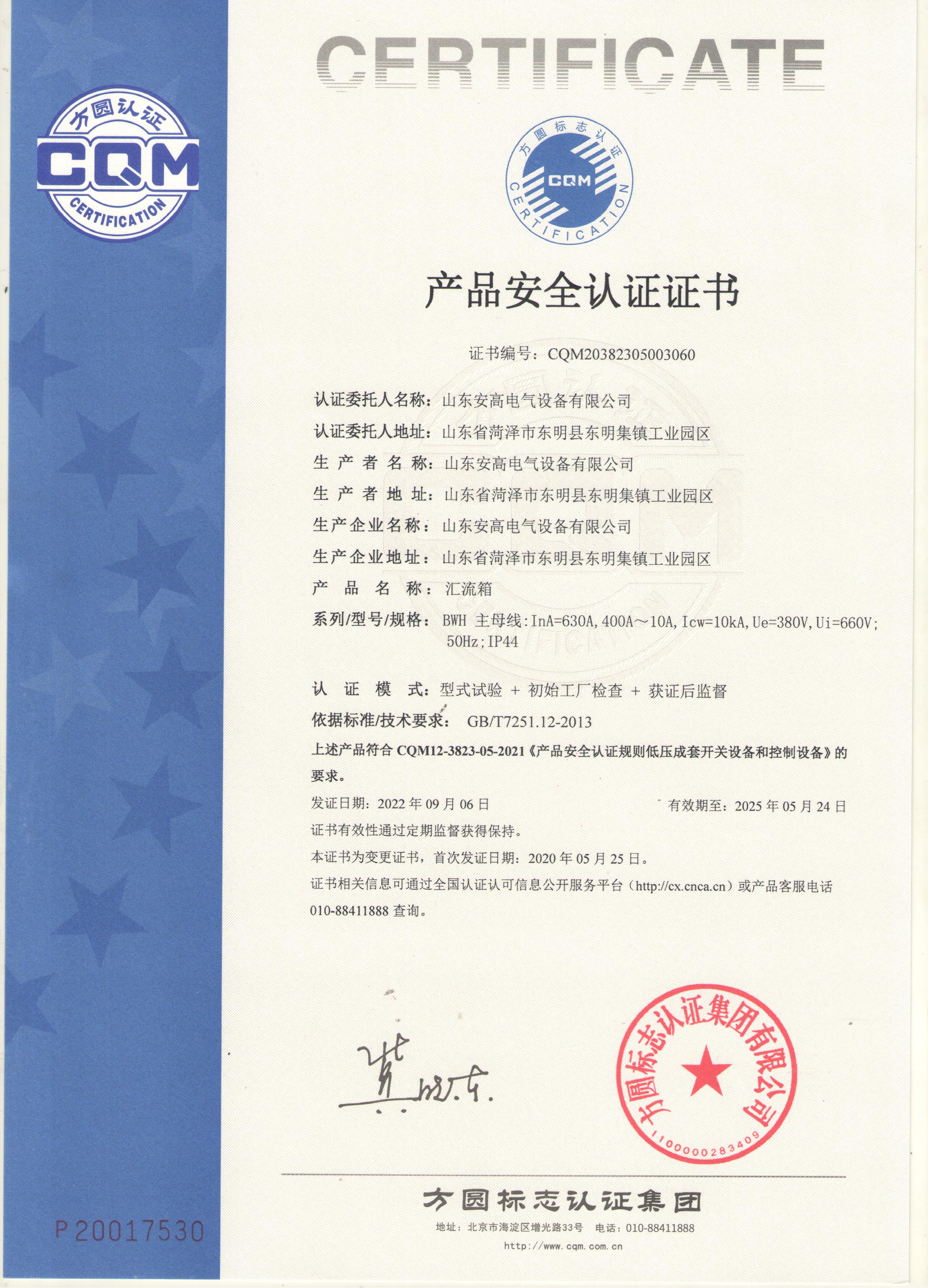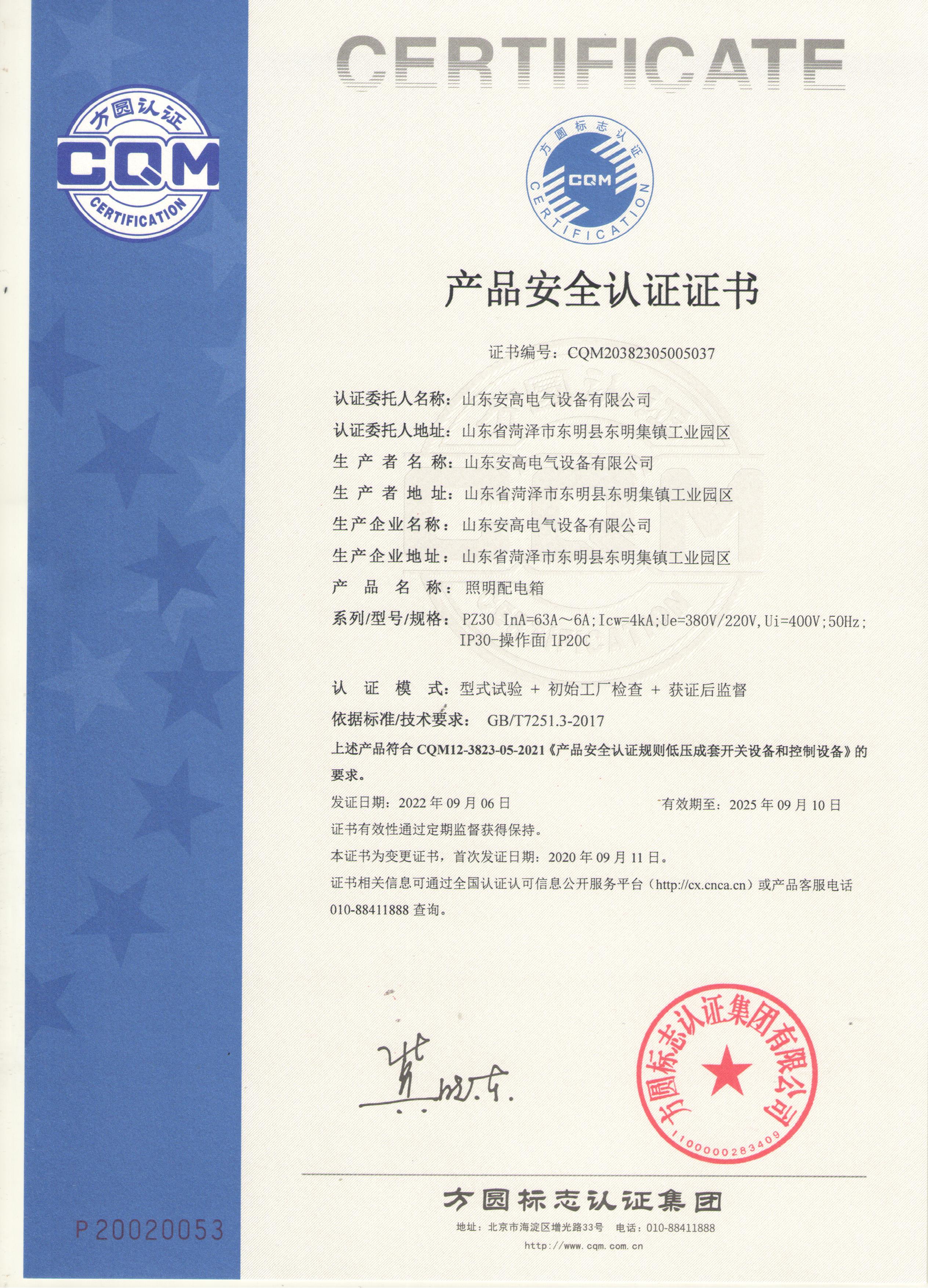 • 產(chǎn)品安全認證證書